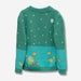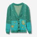 The cardigan that could turn an angy frog into a cozy frog. This cardigan is made with heavy-knit, 100% recycled materials, with a strong focus on coziness. The design from top to bottom is a scene of a starry night over a lush pond, filled with lily pads. On one lily pad, you'll find the famous angy frog sprawled out. On the back side of the cardigan, you are greeted by two little frog cheeks. This cardigan is designed by, and made in collaboration with internet sensation, @angyfrog.