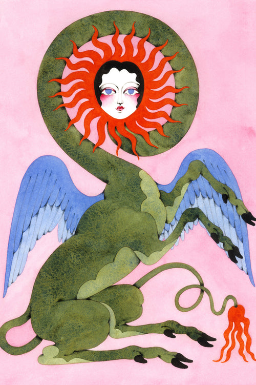Inspired by her adoration for nature and folk tales, Lou’s creations are an enchanted mix of plants, animals, anatomy, and mythological creatures. The vivid water-coloured surreal compositions give an insight into her mystical imagination, expressing the duality of universal themes and personal ideas of the world. With images coming to her almost as visions and an indescribable pull to record them, the uniqueness of her art speaks to the instinctual process in which they are formed.